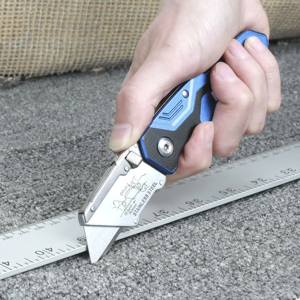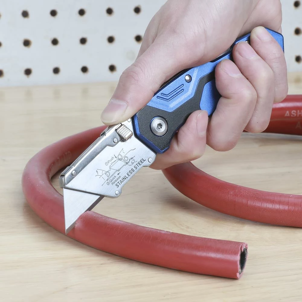 Aluminum handle with stainless steel head utility knife.